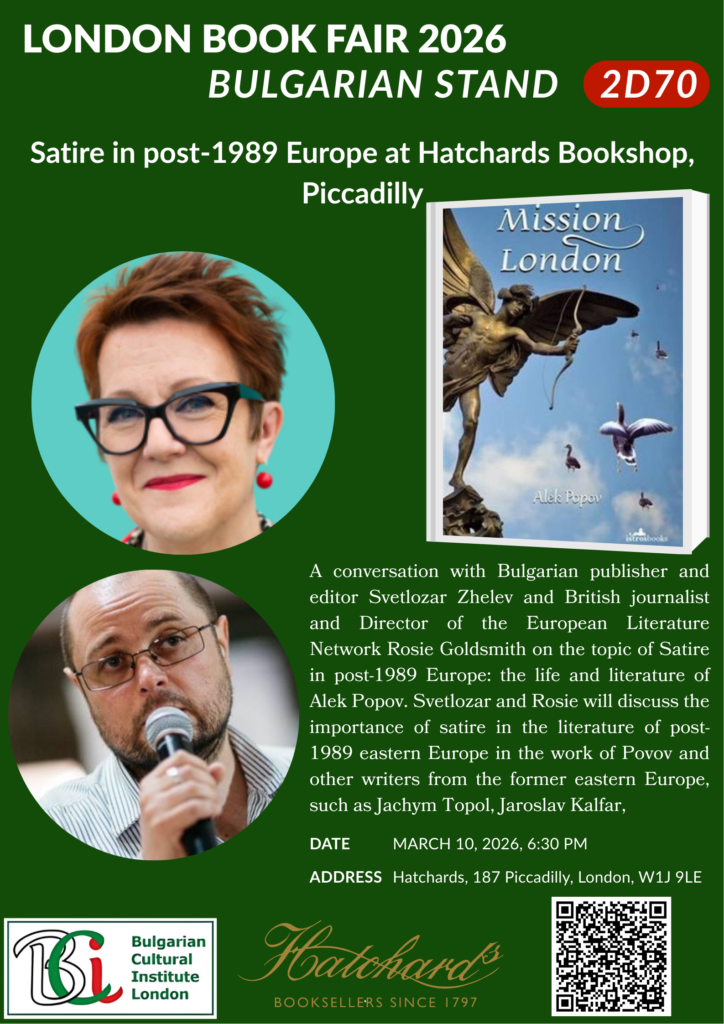 On behalf of the Bulgarian Cultural Institute London, we are delighted to invite you to a special evening of conversation with Rosie Goldsmith, Journalist and Director of the European Literature Network, and Svetlozar Zhelev, renowned literary critic, publisher and long-standing commentator on contemporary Bulgarian literature.