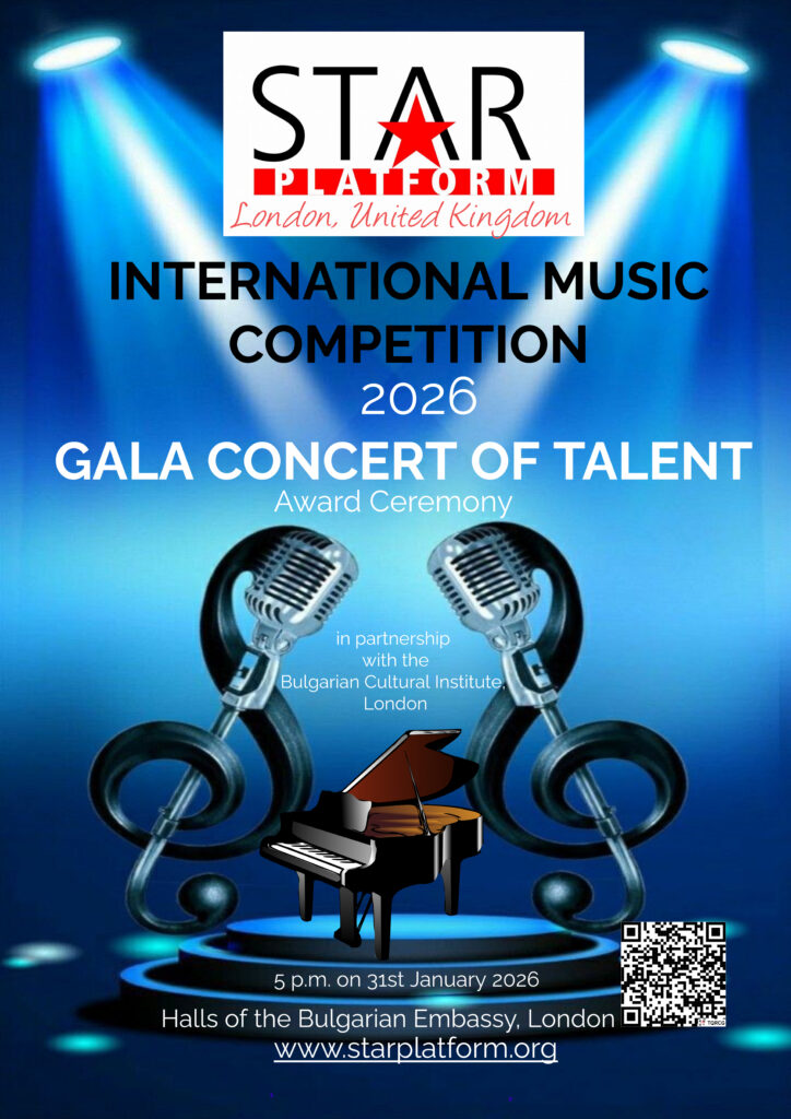 We invite you to attend the Gala concert of talent and Award ceremony of the talents, laureates of the second edition of the “Star Platform” International Music Competition from Great Britain, USA, Bulgaria, Canada, Kazakhstan, Georgia, Uzbekistan, Monaco, Azerbaijan, Austria, Ukraine, India, China, Belarus, Slovakia, France and Turkey. Specially selected performers from the categories Pop-Jazz Singing and Instrumentalists will take part and will present world pop music hits and masterpieces of classical music. Come and join us!